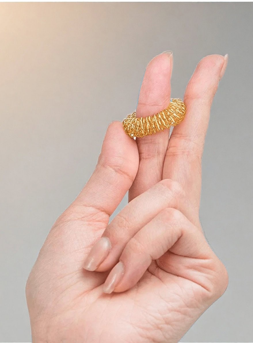 Ontdek de kracht van eeuwenoude Chinese geneeskunde met onze Acupressure Ring! Dit stijlvolle én therapeutische accessoire stimuleert acupressuurpunten op je vingers, helpt je ontspannen, energie balanceren en focus verbeteren – waar je ook bent. Verbetert circulatie, vermindert stress en stimuleert energiebanen.