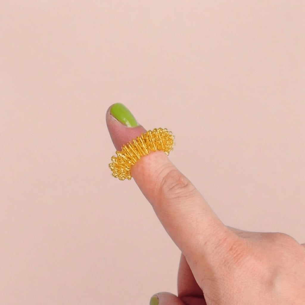 Rol de ring zachtjes op en neer over je vingers, waarbij je lichte druk uitoefent. Gebruik een paar minuten per vinger om de voordelen van acupressuur te ervaren – voor ontspanning, meer focus en nieuwe energie!✨