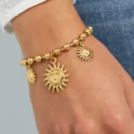 Straal als de zon met de Sun Bold Armband! Deze prachtige armband met grove kralen en opvallende zonbedels is een echte eyecatcher die elke outfit direct een zonnige boost geeft. Gemaakt van hoogwaardig stainless steel, is deze armband 100% waterproof, zodat hij zijn stralende gouden kleur altijd behoudt.