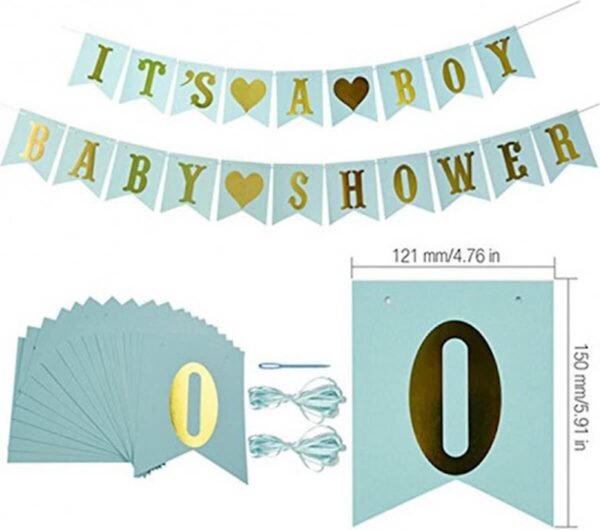 “It’s a Boy” & “Babyshower” Banner Set – Blauw met Goud