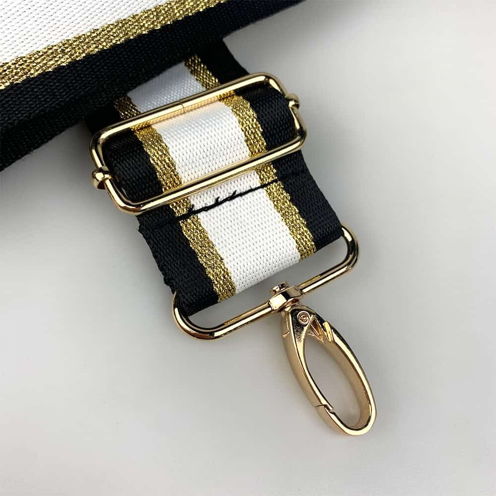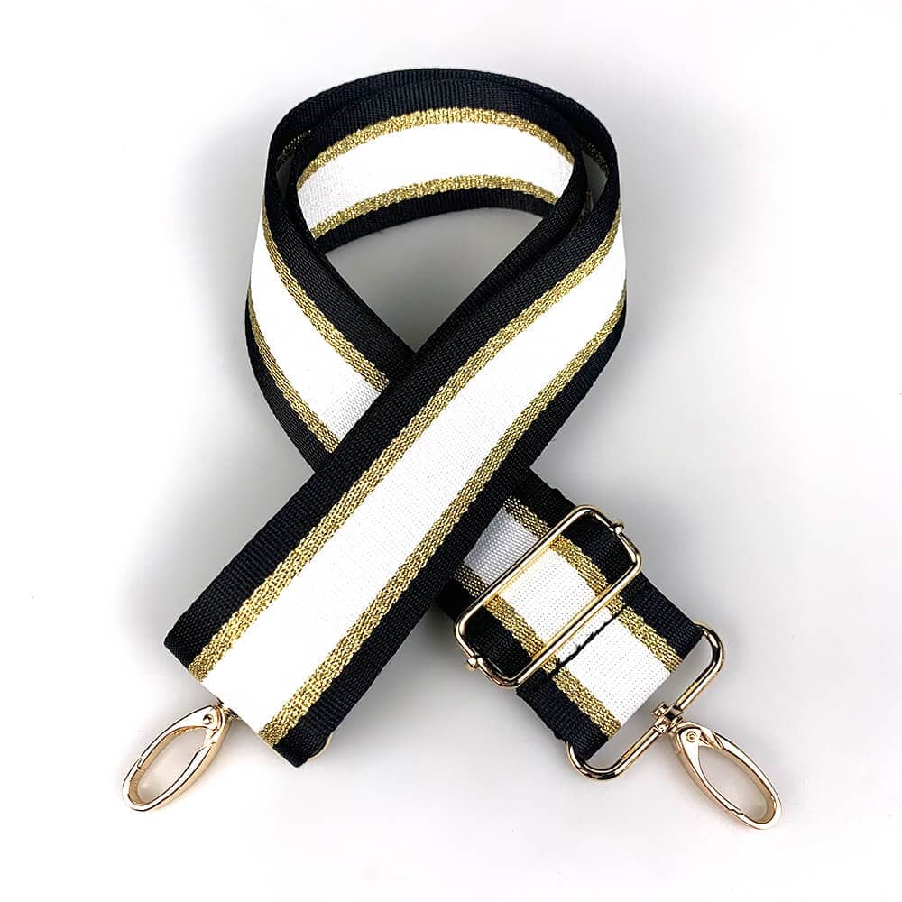 Geef je favoriete tas een stijlvolle upgrade met onze elegante bagstrap in zwart, wit en goud. Deze luxe tassenriem combineert tijdloze kleuren met een vleugje glamour, waardoor elke tas direct een chique en moderne uitstraling krijgt.