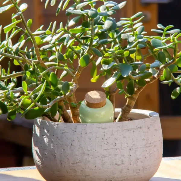 Zo simpel werkt het: begraaf de Olla in de grond, vul ‘m met water, en hij doet de rest. De Olla reguleert de watertoevoer op basis van wat je plant nodig heeft — ideaal voor kamerplanten en plantenbakken.