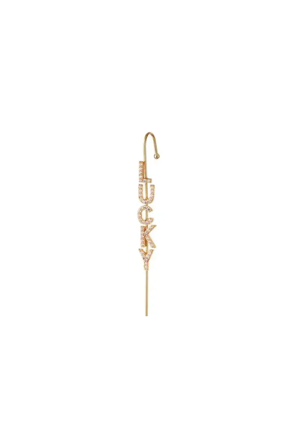Deze oorcrawler met de tekst “Lucky” is een subtiel maar trendy sieraad dat je oor elegant laat schitteren. De fijne zirkonia steentjes zorgen voor een subtiele sparkle, terwijl het unieke design zorgt voor een moderne, stijlvolle uitstraling. Perfect om je look een speelse en luxe touch te geven!