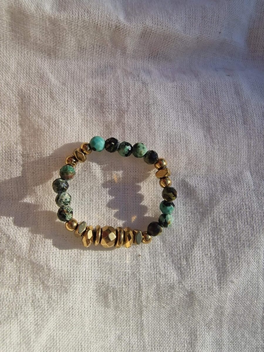 Voeg een vleugje elegantie toe aan je look met deze elastische ring met groene steentjes en gouden accenten! De combinatie van diepe groene tinten en luxe goud zorgt voor een chique en trendy uitstraling, perfect om solo te dragen of te combineren met andere ringen.