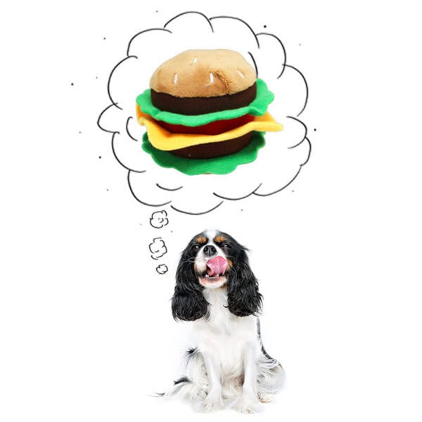 Met deze zachte, knuffelige burger zal jouw hond zowel knuffelen als spelen. Het perfecte cadeau voor jouw trouwe viervoeter!