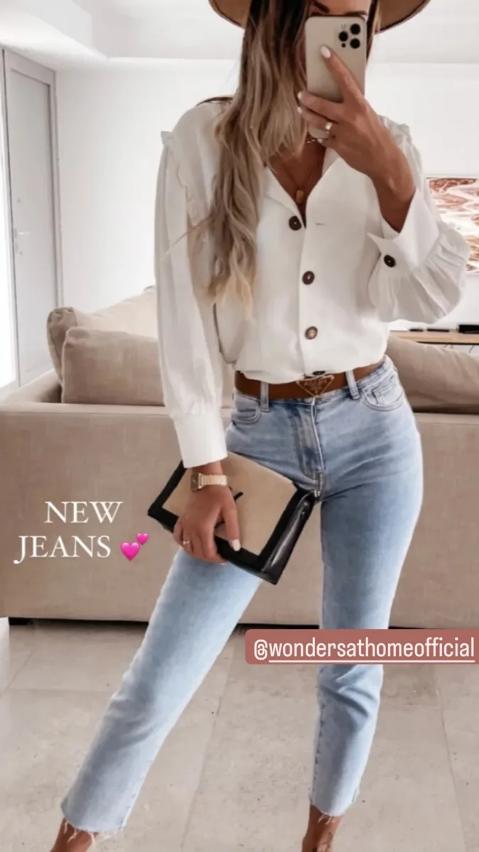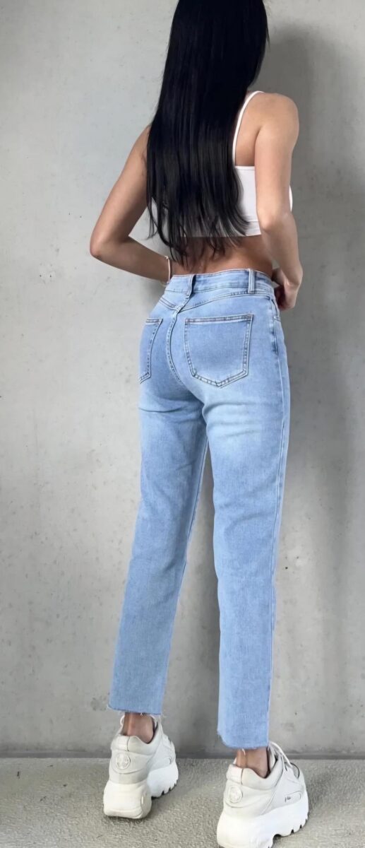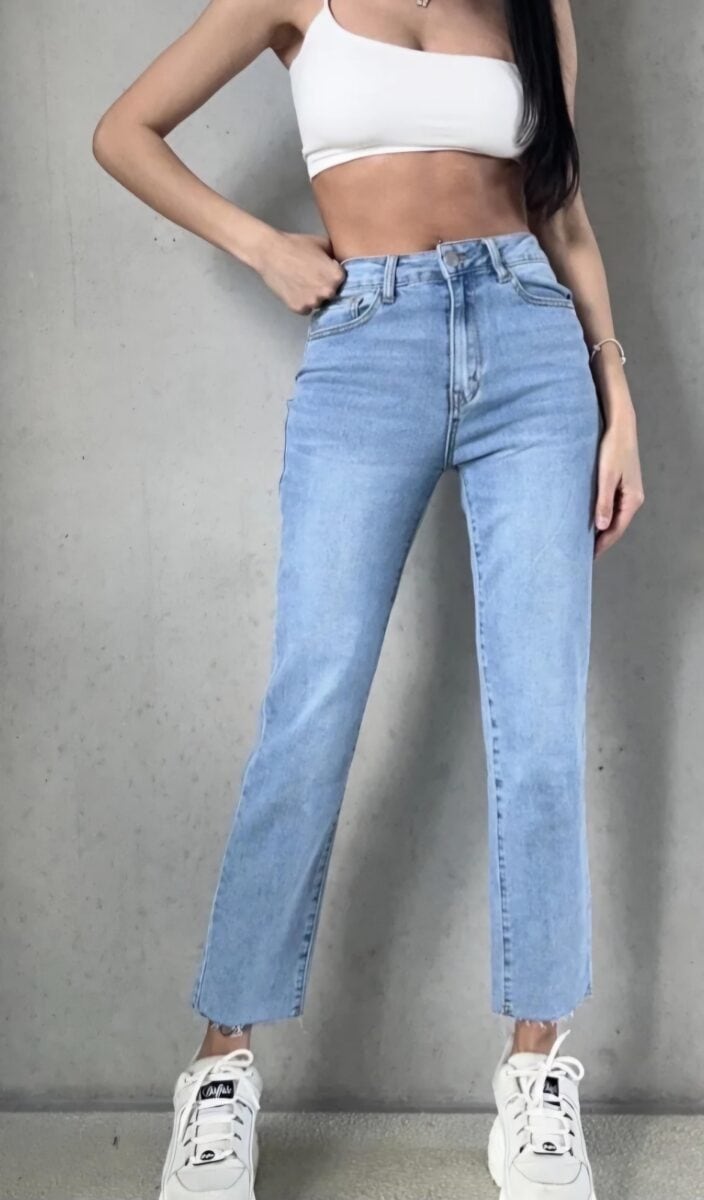 De trendy Mom Fit geeft je look een relaxte en tijdloze uitstraling, terwijl hij door de flatterende pasvorm ideaal is voor dagelijks gebruik.