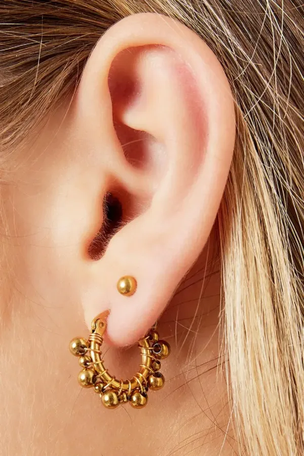 Voeg een vleugje verfijning toe aan je sieradencollectie met onze elegante oorbellen van roestvrij staal, afgewerkt in een schitterende goudkleur. Deze subtiele, maar stijlvolle oorbellen zijn versierd met delicate balletjes, die elke outfit een moderne en tijdloze uitstraling geven. Het duurzame roestvrij staal zorgt voor langdurige glans en comfort, waardoor deze oorbellen perfect zijn voor dagelijks gebruik of speciale gelegenheden. Of je nu een minimalistische look wilt versterken of een extra vleugje elegantie wilt toevoegen, deze oorbellen zijn de ideale keuze. Trakteer jezelf op een tijdloos accessoire dat altijd in stijl blijft!