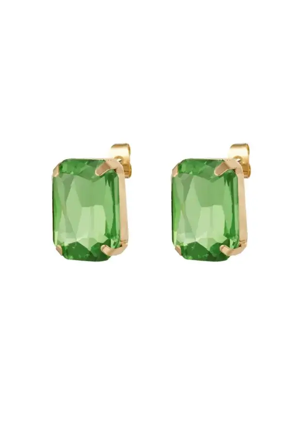 Houd jij van blingbling? Dan is dit gouden paar oorbellen met een grote groene steen echt iets voor jou! De oorbellen zijn perfect om te dragen naar een chique gala of gezellig feestje en zijn te combineren met eindeloos veel leuke sieraden en accessoires. Erg leuk om deze oorbellen te combineren met meerdere sieraden met steentjes. De oorbellen zijn gemaakt van koper en glaskralen en zijn 1,6 cm groot. Ook verkrijgbaar in goud/fuchsia.