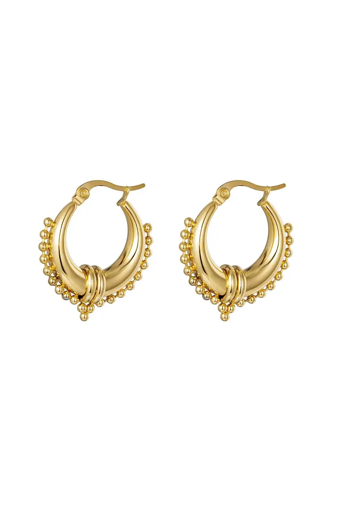 Maak een statement met deze trending oorbellen van goudkleurig roestvrij staal. Deze grove, opvallende oorbellen combineren eigentijdse flair met duurzame kwaliteit, perfect voor de moderne fashionista. Of je nu je dagelijkse look wilt upgraden of een bijzondere gelegenheid hebt, deze oorbellen voegen een vleugje glamour toe aan elke outfit. Met hun robuuste en toch stijlvolle design zijn ze een must-have accessoire die je niet wilt missen. Voeg deze trendy oorbellen toe aan je collectie en straal bij elke stap!