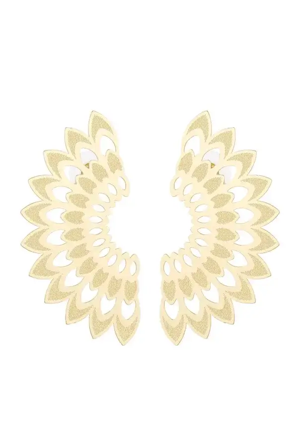 Wauw! Hoe leuk zijn deze gouden statement oorbellen in de vorm van een Wing! Super leuk om deze oorbellen te dragen tijdens een festival of feestje. Ook leuk te combineren met diverse kleurrijke accessoires, perfect voor het komende seizoen! Daarnaast zijn de oorbellen ook zeer geschikt voor een casual gelegenheid. De oorbellen zijn gemaakt van koper en hebben een afmeting van 5,5 cm.