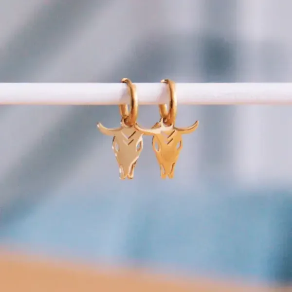 Oorbellen met Stier Skull Bedeltjes – Gouden Edge voor Jouw Look 🐂✨