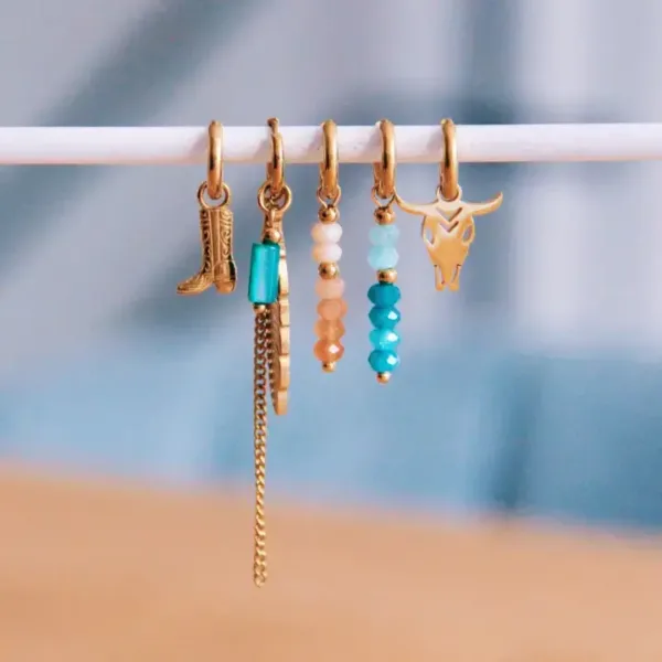 Ga voor een stoere en unieke uitstraling met deze oorbellen met stier skull bedeltjes in goudkleur. Het krachtige design van de stierenschedel geeft je outfit een edgy vibe, terwijl de gouden glans zorgt voor een stijlvolle afwerking. Perfect voor een statement look of om te combineren met andere oorbellen!