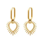 Laat je hart stralen met deze elegante roestvrijstalen oorbellen! De unieke vierkante ringen geven een moderne twist, terwijl de hartvormige bedel een prachtig stralend effect creëert. Deze oorbellen zijn gemaakt van hoogwaardig stainless steel, dus je hoeft je geen zorgen te maken over verkleuring of slijtage.