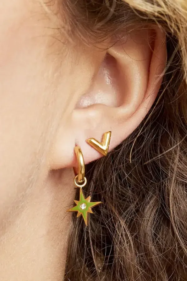 Upgrade je sieradencollectie met deze gouden oorstekers in V-vorm! Het minimalistische maar stoere design maakt ze perfect voor zowel een casual als chique look. Draag ze solo voor een strakke uitstraling of combineer ze met andere oorbellen.