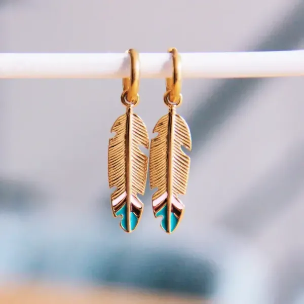 Stalen Oorbellen met Gekleurde Veer – Smaragd, Rood & Roze Vibes 🍂✨