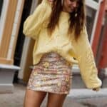 Combineer deze rok met onze pastelgele trui voor een vrolijke, frisse look die zowel comfortabel als stijlvol is. Perfect voor een dagje uit of een feestje, deze rok brengt je outfit direct tot leven en zorgt voor een sprankelende, elegante touch. De ideale keuze om elke dag wat fleuriger te maken!