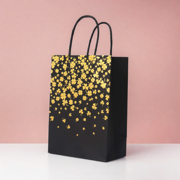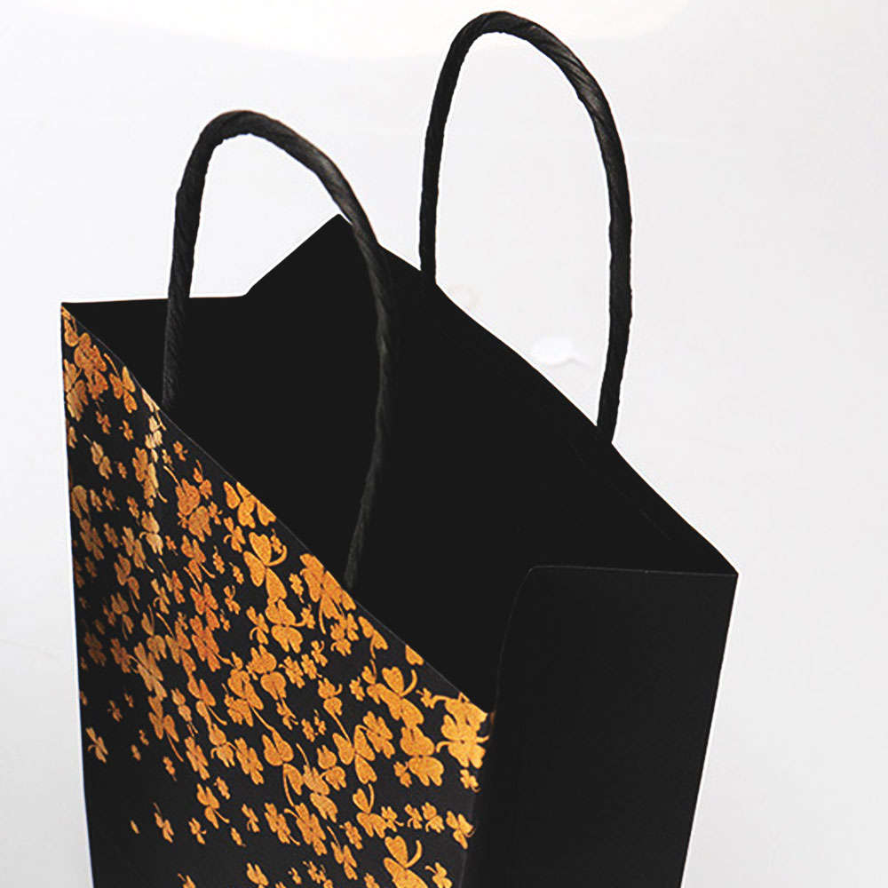 Papieren Cadeautasjes – Zwart met Gouden Klavers | Set van 5 Luxe Gift Bags