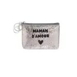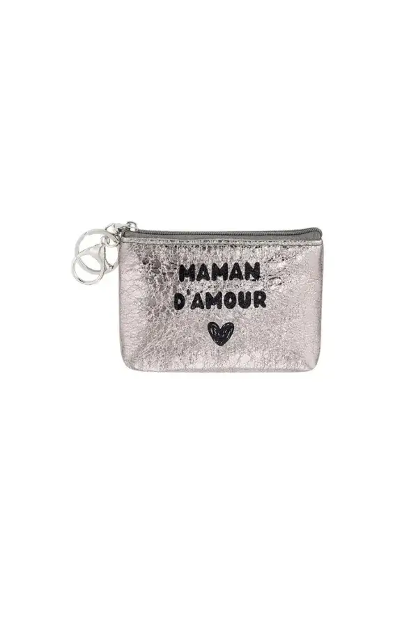 Hoe leuk zijn deze metallic portemonnees in het zilver met zwarte tekst: maman d’amour. De portemonnees hangen aan een sleutelhanger, waardoor je deze portemonnee bv perfect aan je sleutels kunt koppelen. Ook leuk om cadeau te geven. De portemonnees zijn gemaakt van 95% PU en 5% metaal en hebben de volgende afmetingen: 12,5 x 8 cm. Verkrijgbaar verschillende kleuren.