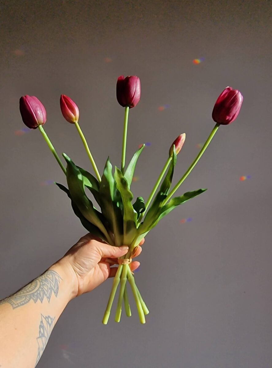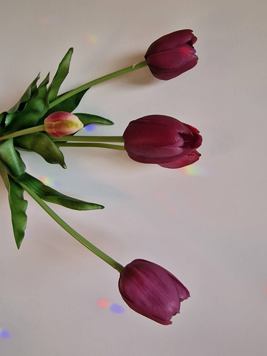 Breng gezelligheid in huis met onze Real Touch Tulpen! Deze levensechte tulpen zijn gemaakt van hoogwaardige materialen die de textuur en het gevoel van echte bloemen nabootsen. Elk bosje bestaat uit 5 stelen, zorgvuldig samengesteld om een stijlvolle en elegante uitstraling te garanderen. Perfect voor elk interieur, als cadeau of om gewoon uzelf te verwennen. Geniet van de charme van tulpen zonder onderhoud – deze bloemen verwelken nooit! Bestel nu en ervaar de tijdloze pracht van Real Touch Tulpen.