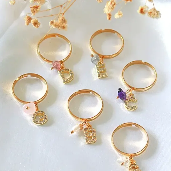 Maak je sieradencollectie persoonlijk en betekenisvol met deze prachtige verstelbare 24K vergulde ring, versierd met een initiaal hanger en een natuurlijke kristalsteen naar keuze. Deze ring combineert stijl, luxe en spirituele energie in één tijdloos ontwerp.