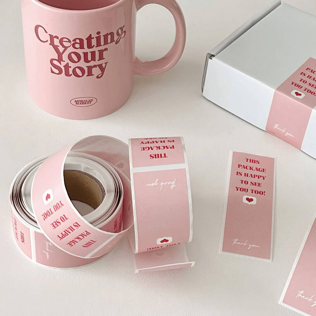 Geef jouw verzendverpakkingen een vrolijke en persoonlijke touch met deze sluitstickers in de kleur Sweet Pink. De boodschap “This Package is Happy to See You Too!” zorgt gegarandeerd voor een glimlach bij de ontvanger â ideaal voor webshops, cadeautjes of gewoon om je post net dat beetje extra te geven.