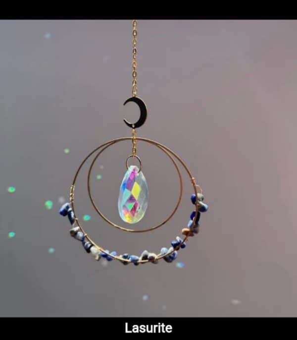 Ben jij ook betoverd door het effect van zonlicht op kristallen? Dan is deze Lapis Lazuli suncatcher precies wat je zoekt! Deze prachtige kristallen zonnevanger vangt het zonlicht en verspreidt magische regenboogreflecties, waardoor je huis of tuin wordt gevuld met een serene, dromerige sfeer.