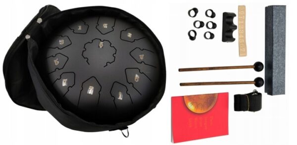 Ontdek de betoverende klanken van onze zwarte Tongue Drum, perfect voor zowel beginners als ervaren muzikanten. Deze prachtig vormgegeven drum biedt een rustgevende en melodieuze ervaring die ideaal is voor meditatie, ontspanning of muzikale exploratie. De set wordt compleet geleverd met hamers, vingerringen, een sticker, een Engelse handleiding en een handige drumtas, zodat je overal en altijd kunt spelen. Of je nu thuis wilt ontspannen of onderweg wilt genieten van muziek, onze Tongue Drum biedt een unieke en harmonieuze ervaring. Voeg dit prachtige instrument vandaag nog toe aan je collectie en laat je meevoeren door zijn magische klanken!