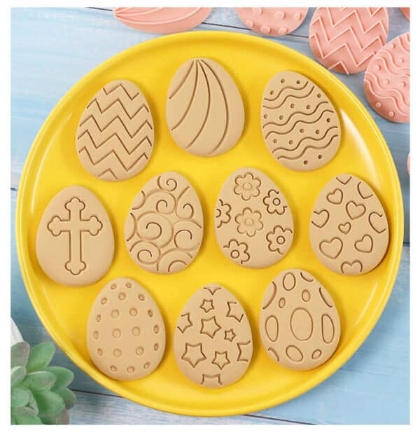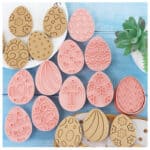 Maak van het bakken met Pasen een vrolijk feestje met deze Paaseitjes uitsteekvormen- en stempelset! De set bevat 1 uitsteekvorm en maar liefst 8 verschillende stempels, waarmee je elk koekje een uniek paasei-patroon geeft.