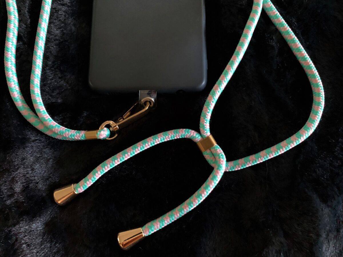 ✔ Strak design met stijlvol zwart koord om je telefoon om je nek of schouder te dragen.