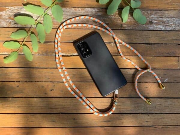 ✔ Strak design met stijlvol koord om je telefoon om je nek of schouder te dragen.
