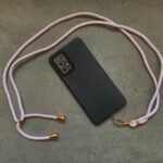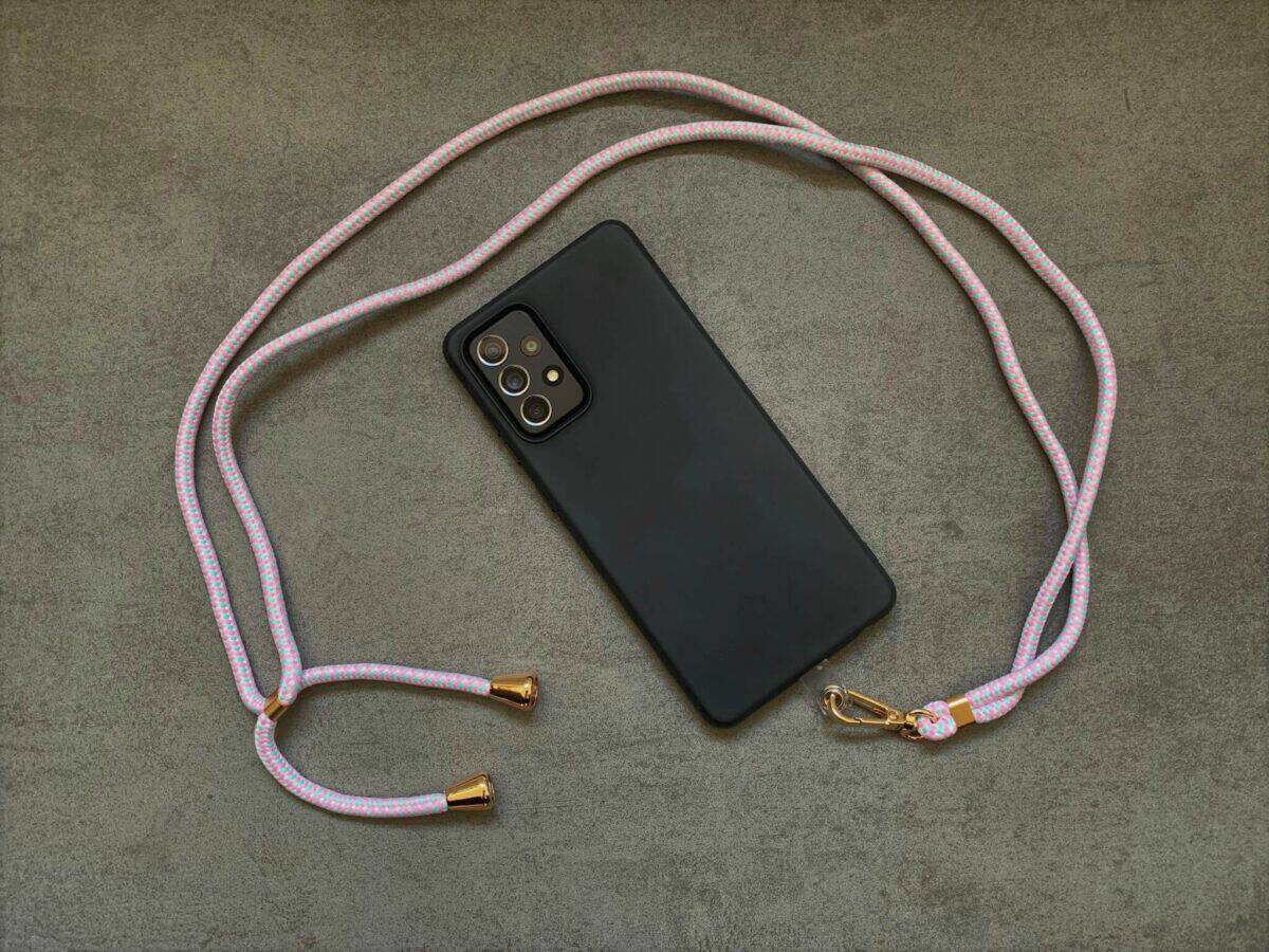 ✔ Strak design met stijlvol zwart koord om je telefoon om je nek of schouder te dragen.