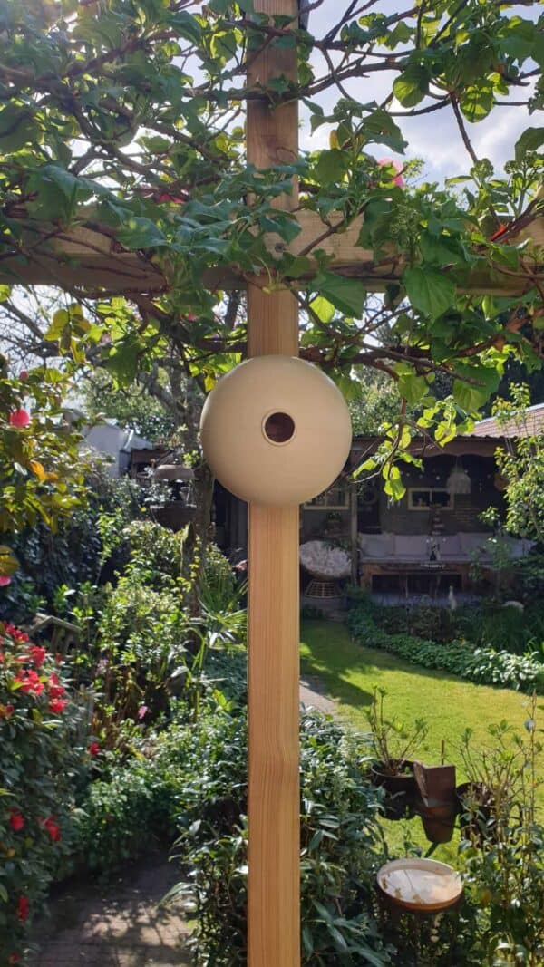 Breng leven in je tuin met deze sfeervolle vogelpot van geperste bamboevezels, maΓ―szetmeel en hars. Niet alleen een prachtige toevoeging aan een natuurlijke tuin, maar ook een veilige en comfortabele nestelplek voor vogels zoals mezen en mussen.