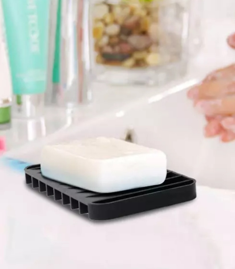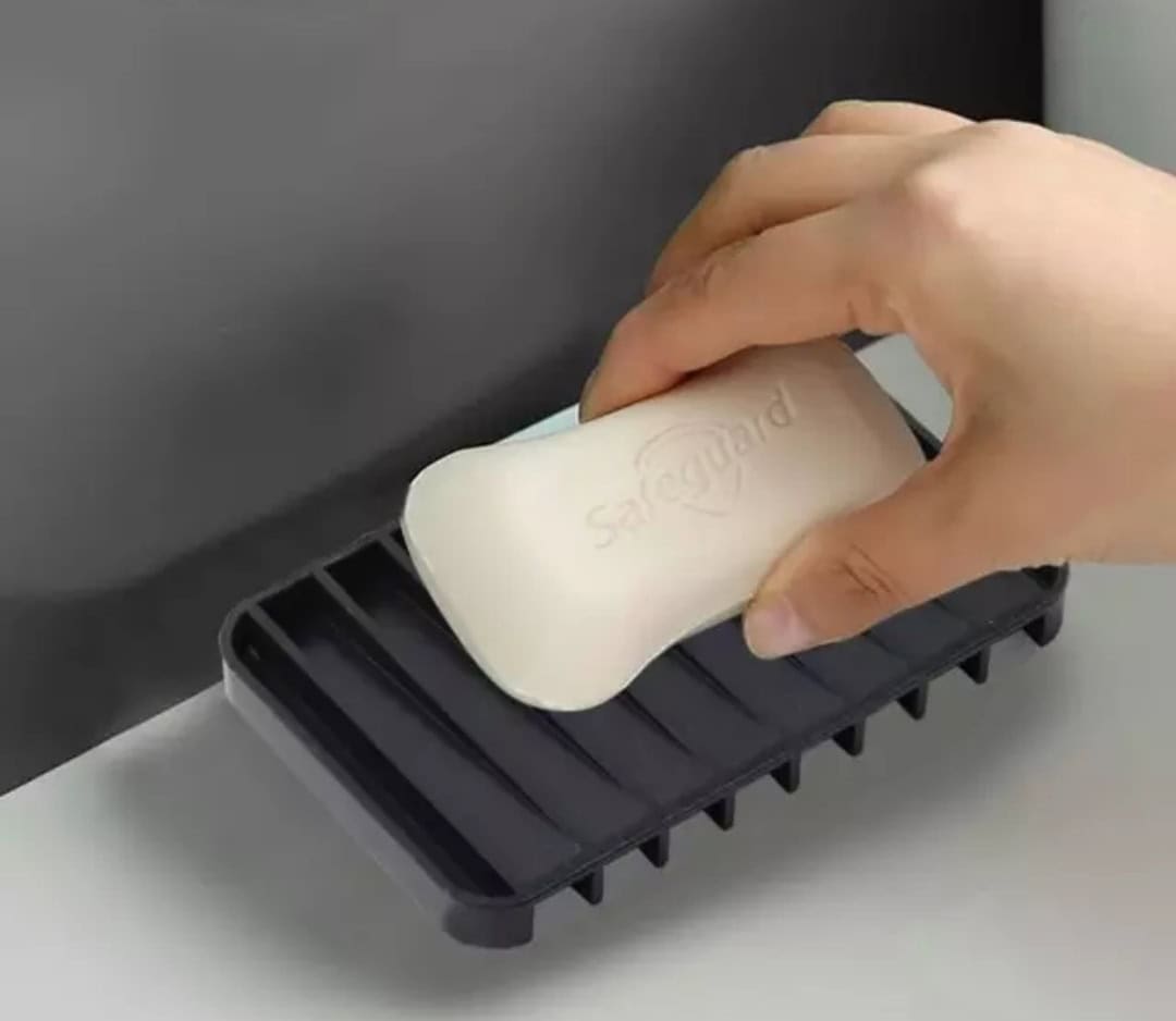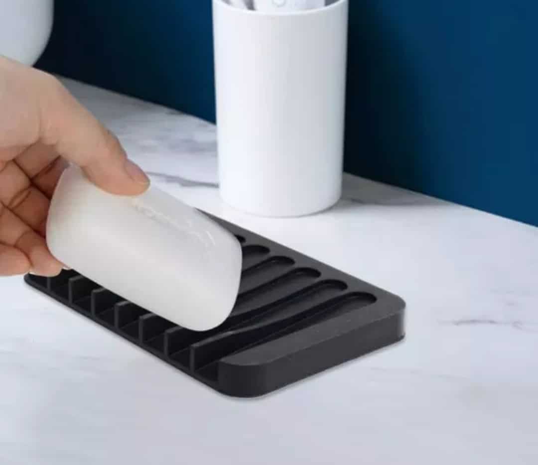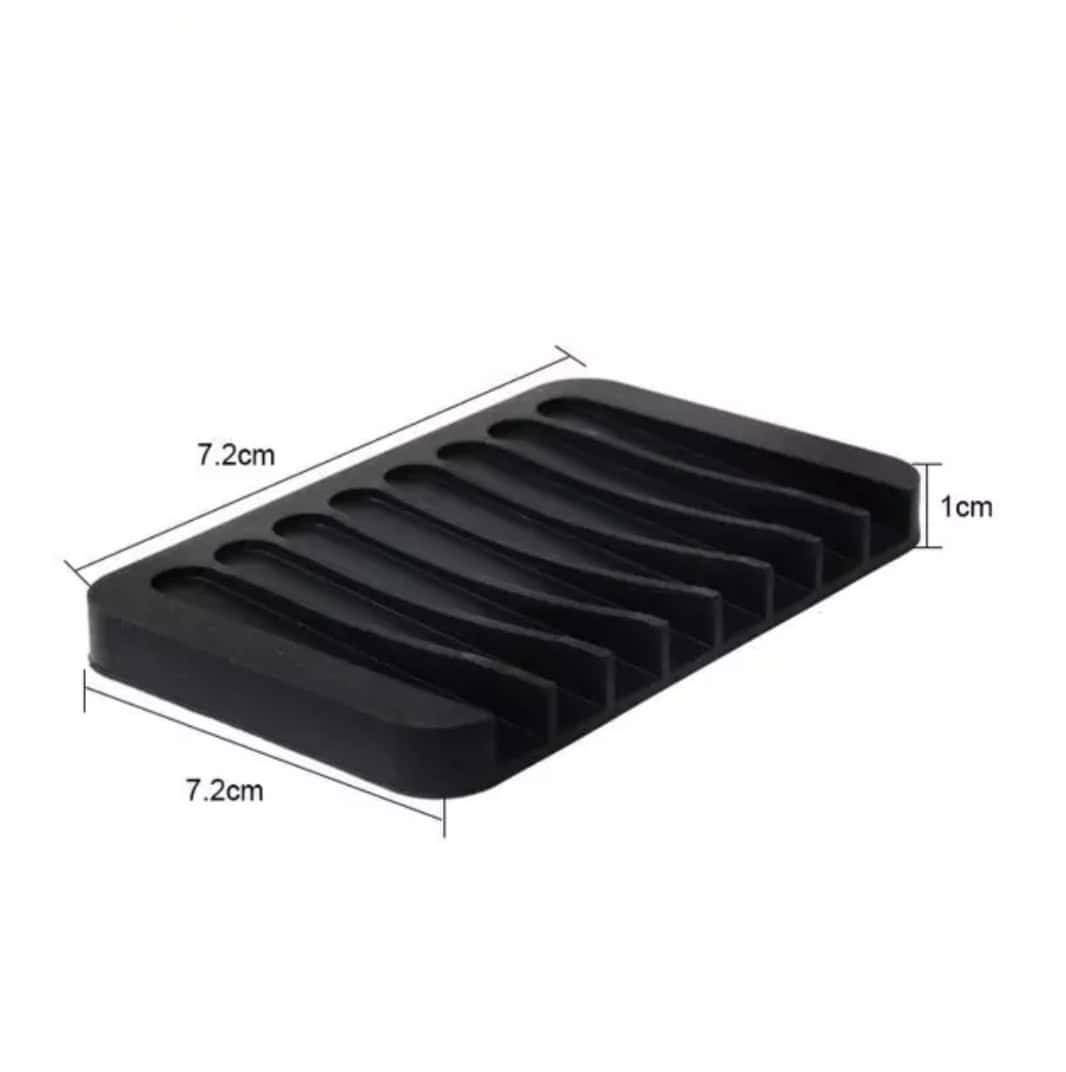 Dit zwarte siliconen zeepbakje is de perfecte aanvulling voor jouw badkamerinterieur. Met zijn strakke en moderne design zal het niet alleen je zeep netjes op zijn plaats houden, maar ook een vleugje elegantie toevoegen aan je badkamer. Het aflopende ontwerp zorgt ervoor dat het water gemakkelijk kan weglopen, waardoor je zeep langer fris en droog blijft.